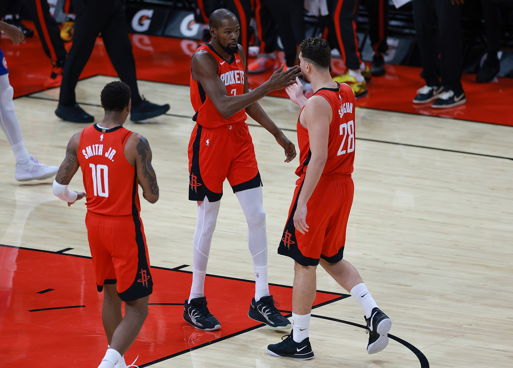 Điều đáng chú ý là Kevin Durant đã thể hiện sự tin tưởng của mình đối với cầu thủ trẻ trong suốt trận đấu. Khi Thẩm Kinh muốn chuyền bóng cho anh, Durant sẽ nhất quyết yêu cầu Thẩm Kinh xử lý bóng. Durant biết rằng anh ấy đang ở trạng thái tốt nhất khi được giao cho các tình huống một đối một. Là một người xử lý bóng, anh ấy đôi khi có xu hướng chuyển hướng. Sự điều chỉnh này sẽ có lợi cho hành vi phạm tội của Rockets.